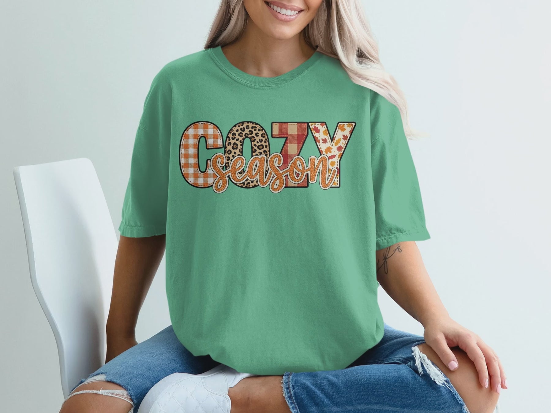 Celebrate the spirit of autumn with the Cozy Season Plaid Leopard Fall Leaves Design Sweatshirt and Comfort Colors Tee. This unique blend of plaid leopard print and falling leaves brings a stylish touch to chilly days, keeping you warm and fashionable through fall and winter. Perfect for layering or wearing on its own, it’s a must-have for embracing cozy comfort with a bold seasonal flair.