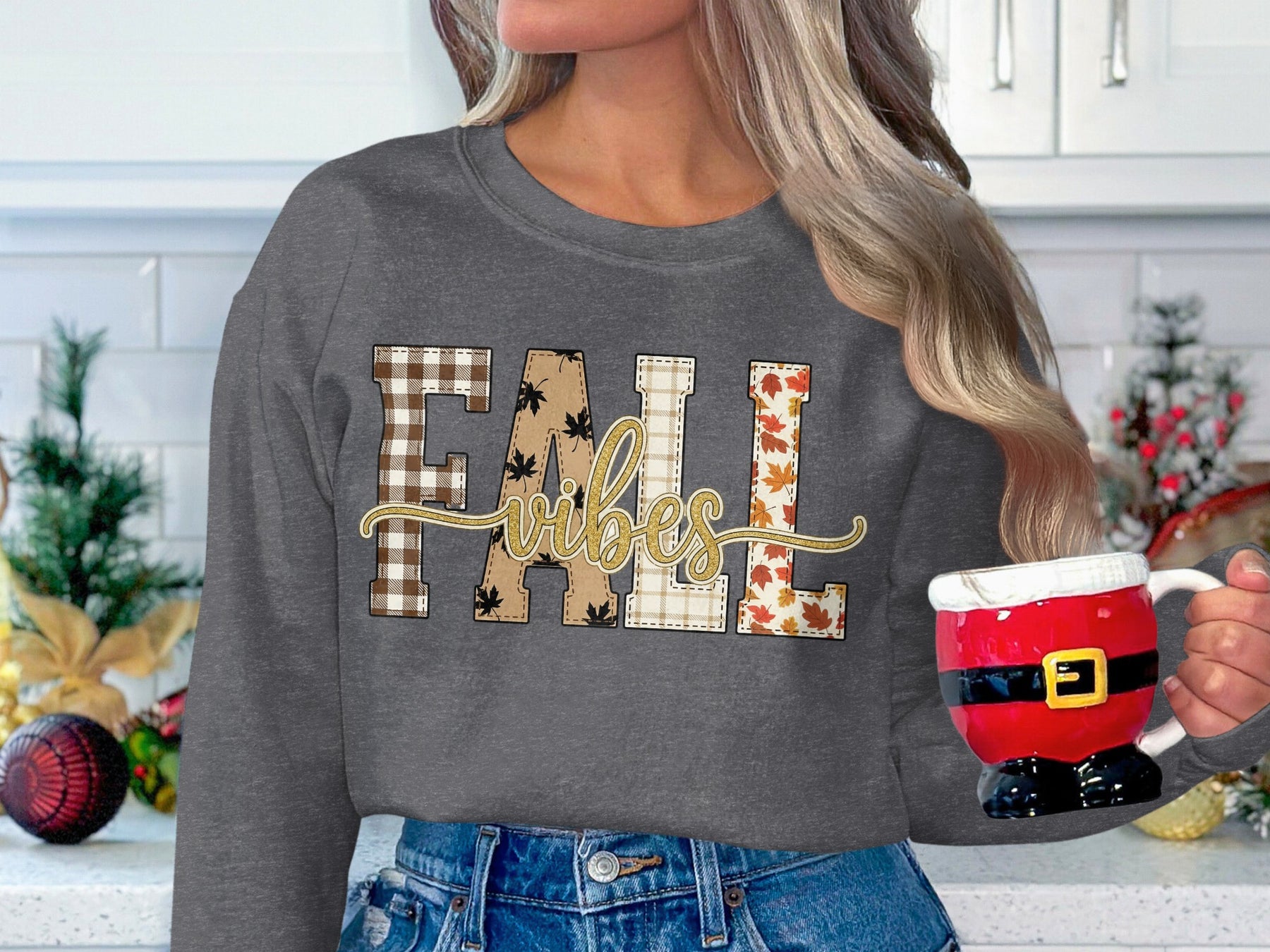 Wrap yourself in autumn magic with this Fall Vibes sweatshirt—your new favorite way to celebrate the season! Featuring eye-catching word art design, this cozy layer brings playful seasonal energy to your everyday wardrobe. Whether you're sipping cider at the pumpkin patch or enjoying crisp morning walks, this sweatshirt delivers comfort and style when the leaves start turning. Perfect for anyone who lives for fall's golden vibes and wants to wear their love of the season loud and proud.