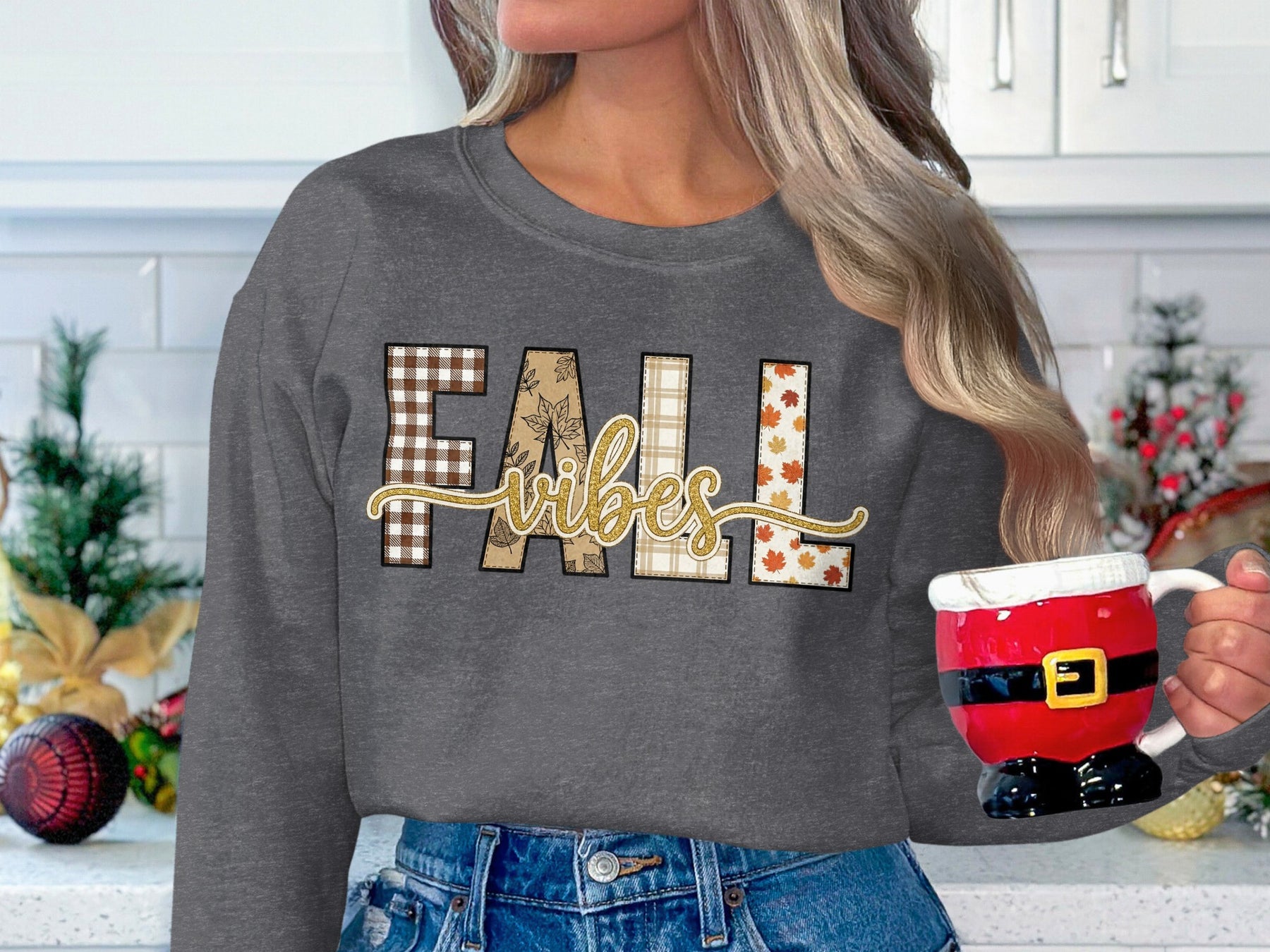 Celebrate all things autumn with this cozy Fall Vibes sweatshirt that captures the magic of the season. Perfect for layering through crisp fall days, this wardrobe essential lets you wear your seasonal spirit with style. Whether you're sipping cider at the pumpkin patch or enjoying a bonfire with friends, this playful piece keeps you comfortable while spreading autumn cheer.