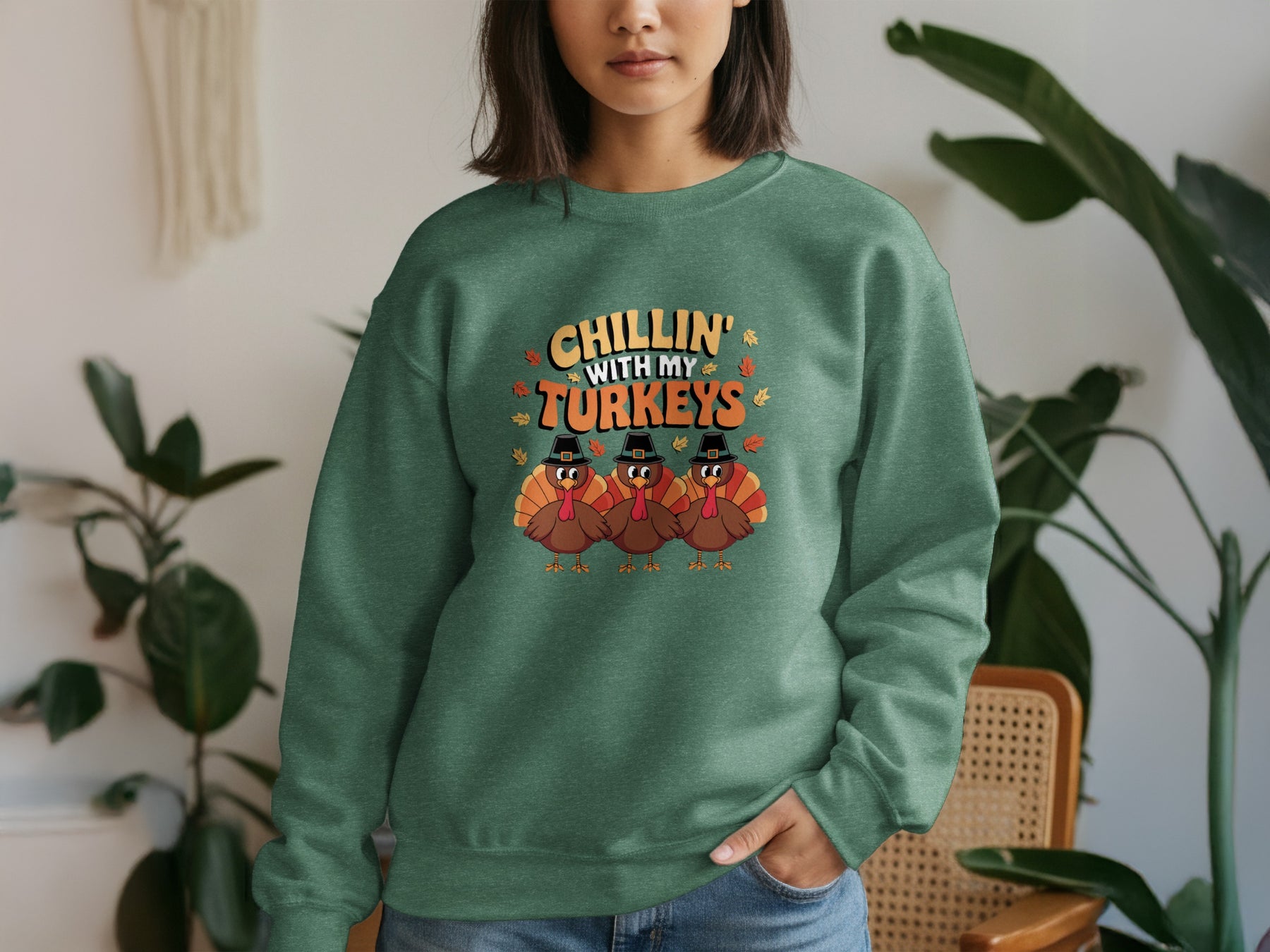 Get cozy and festive with the "Chillin' With My Turkeys" sweatshirt! This playful design is perfect for turkey lovers ready to relax and celebrate Thanksgiving in style. Soft and comfortable, it’s your go-to for a fun, laid-back holiday vibe that’ll keep you smiling all day long.